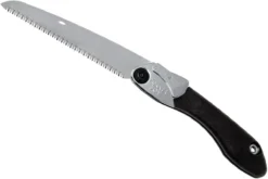 Le système est facile à utiliser. La scie pliante s’ouvre en défaisant d’abord la partie verte du manche. D’un léger mouvement, vous ouvrez le cadre en aluminium et clipsez la partie noire du manche dans la partie verte. Vous ouvrez donc l’AGAWA Boreal15 sans avoir à toucher la lame de la scie. En quelques secondes, vous êtes prêt à vous attaquez à du bois sec, dur ou mou !