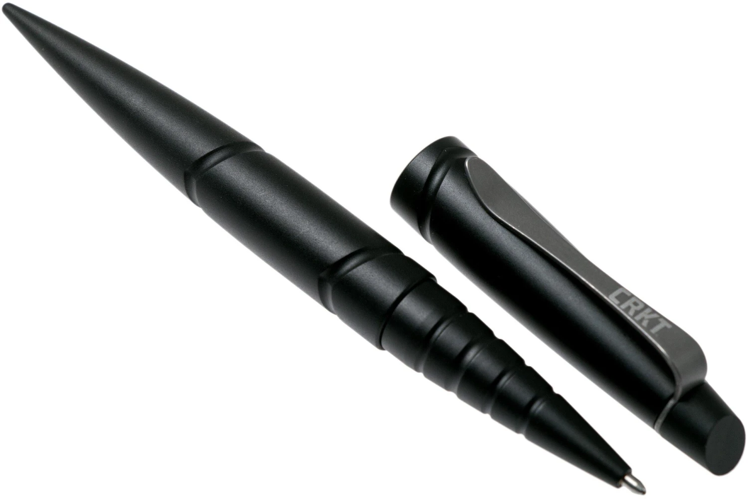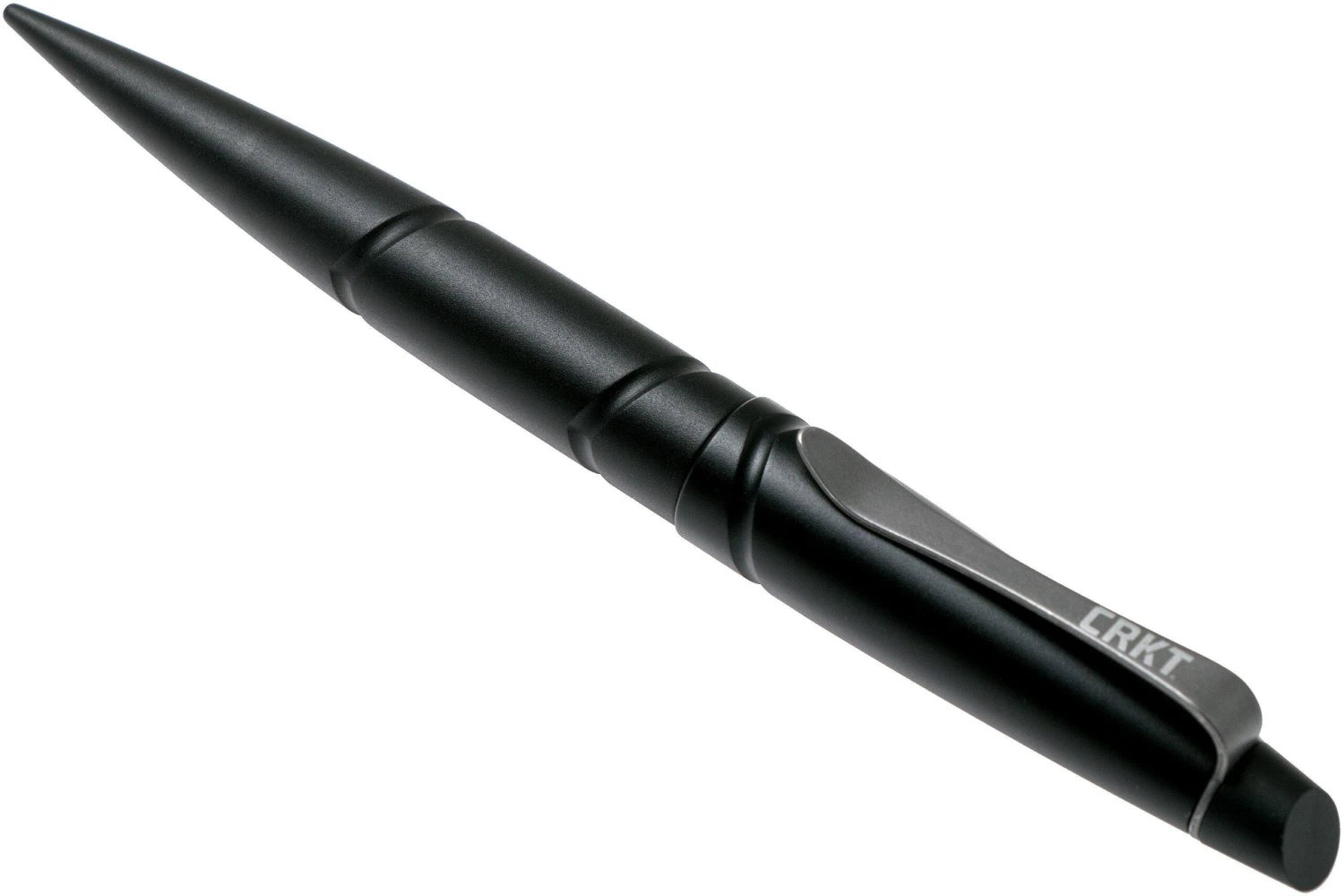 Le stylo tactique CRKT est conçu par James Williams. Il s’agit d’un instrument d’écriture élégant avec toutes les caractéristiques attendues d’un stylo. Son corps conique repose parfaitement dans vos doigts. Il est rempli d’une cartouche Fisher Space Pen noire. Celle-ci vous permet d’écrire dans toutes conditions météorologiques et même à l’envers. Mais ce stylo est bien plus. Ce stylo tactique peut être utilisé en auto-défense. Le stylo est fait d’aluminium anodisé avec une finition noire mate.
