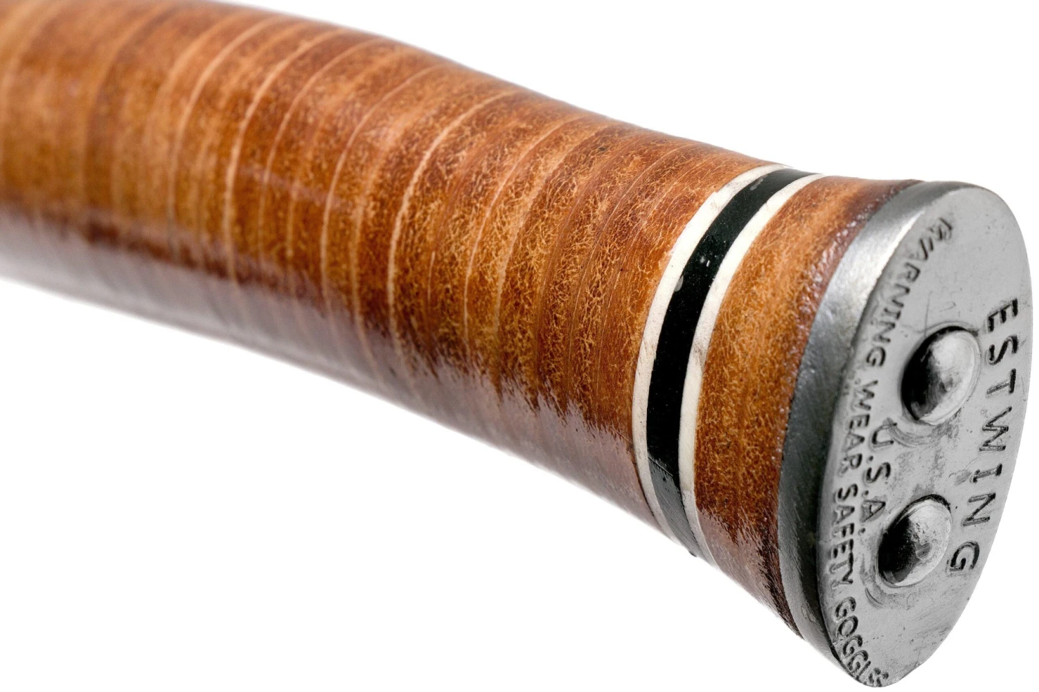 La Estwing Sportsman’s E24A est la plus grande soeur de la E14A. Vous pouvez emporter cette belle petite hache équilibrée avec vous lors d’une promenade, en camping ou pour jardiner. La hache est forgée d’une seule pièce ce qui est unique et augmente la force. Le manche a une finition en cuir parfaite pour l’absorption des chocs. Cette hache est livrée avec un étui en nylon innovateur qui s’attache rapidement, qui n’est pas sensible à l’humidité et qui peut être utilisé pour transporter ou simplement suspendre la hache. Il peut être portée à la ceinture (largeur maximale : 5 cm).