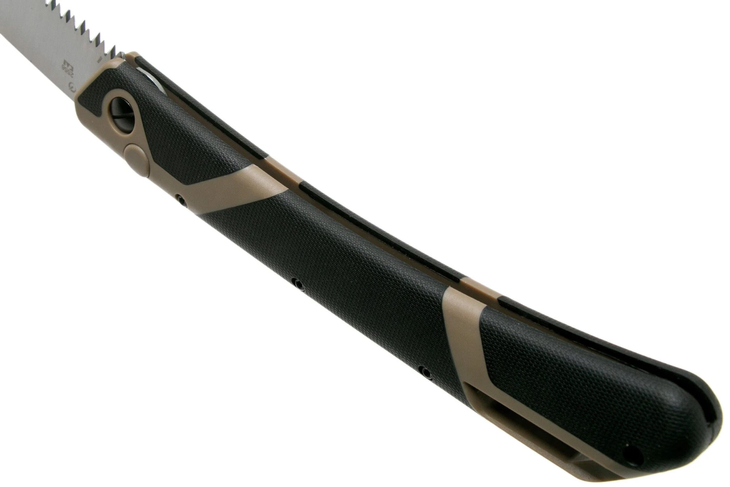 La Kershaw Taskmaster Saw 2 est une scie pliante. Il s’agit d’une version renouvelée de la Taskmaster originelle, avec quelques modifications. Ainsi, Kershaw a éliminé les empreintes pour le doigt afin de favoriser un aspect plus moderne. Malgré tout, le couteau offre une prise largement suffisante, grâce à des éléments en caoutchouc intelligemment positionnés. La Taskmaster 2 est l’outil idéal quand on a besoin d’une scie compacte, que ce soit pour le jardinage ou le camping. Quoi qu’il en soit, la Taskmaster 2 fera un ajout de qualité à votre outillage !
