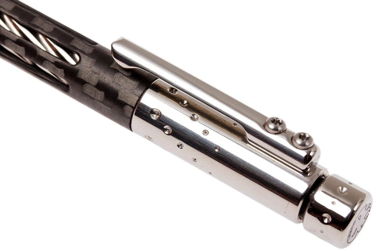 Le LionSteel Nyala est un stylo très exclusif en titane, conçu par Tommaso Rumici. Réalisé uniquement avec les meilleurs matériaux et techniques. C’est un stylo fait pour être vu. La gaine au milieu du stylo est unique. Elle est en fibre de carbone. Le contour torsadé sur le noyau en titane et les encoches dans la gaine rendent le look du Nyala vraiment spécial. Faire tourner la gaine autour du noyau est un vrai plaisir pour les yeux.