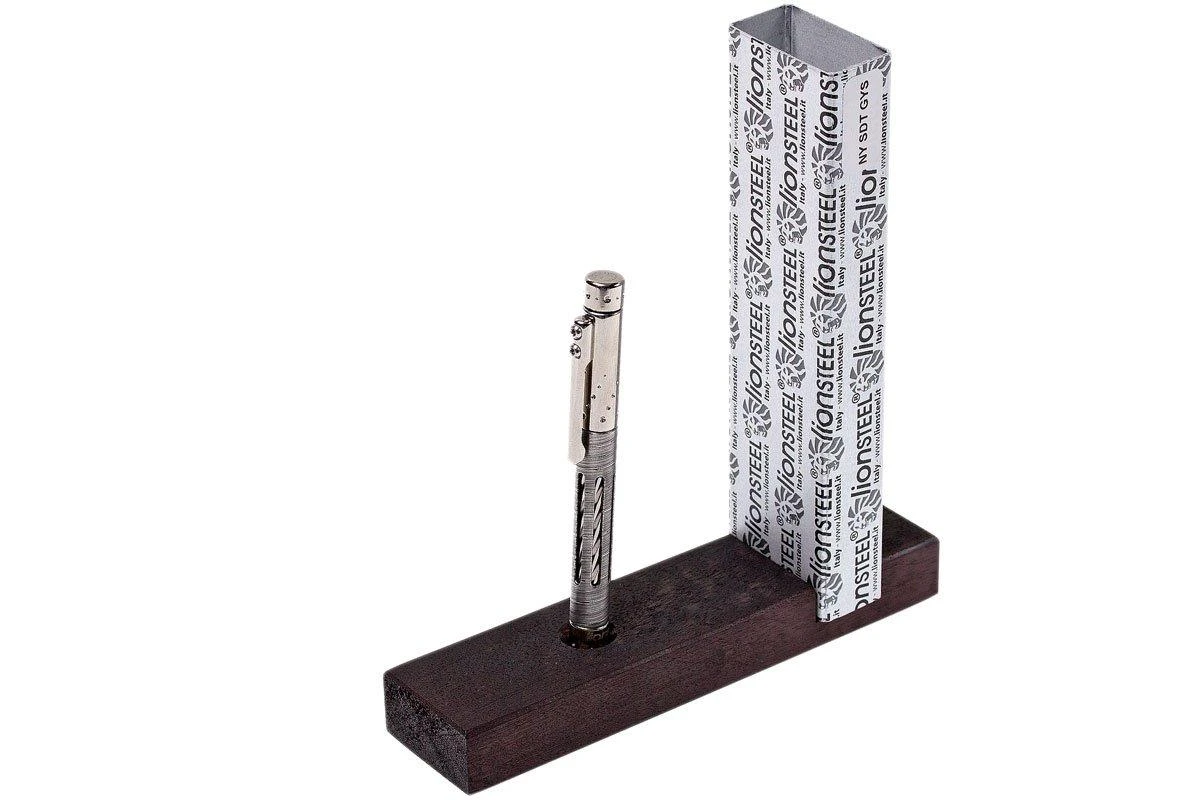 Le LionSteel Nyala est un stylo exclusif en titane, conçu par Tommaso Rumici. Réalisé avec les meilleurs matériaux et techniques. Un stylo fait pour être vu ! Le manchon qui entoure le milieu du stylo est unique. Il est en Damasteel Twist Damascus très fin. Le profil torsadé du noyau en titane et les découpes dans le manchon donnent au Nyala un look vif. L’effet visuel est sympa.