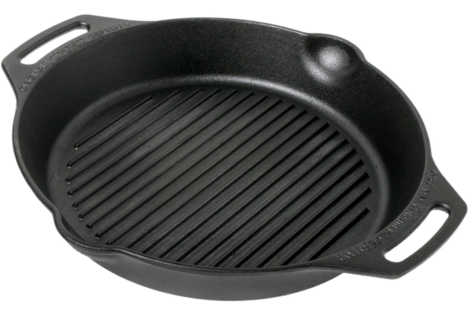 Le skillet gril en fonte Petromax GP30h-t avec deux poignées est idéal pour préparer des légumes, du poisson ou de la viande avec une saveur authentique de grillade. Ce skillet de 30 cm est en fonte et peut être chauffé à des températures extrêmement élevées. Vous pouvez l’utiliser sur la cuisinière mais aussi dans le four ou, encore mieux, sur le feu ouvert. Grâce à ce skillet, soyez prêt à déguster des steaks parfaits !