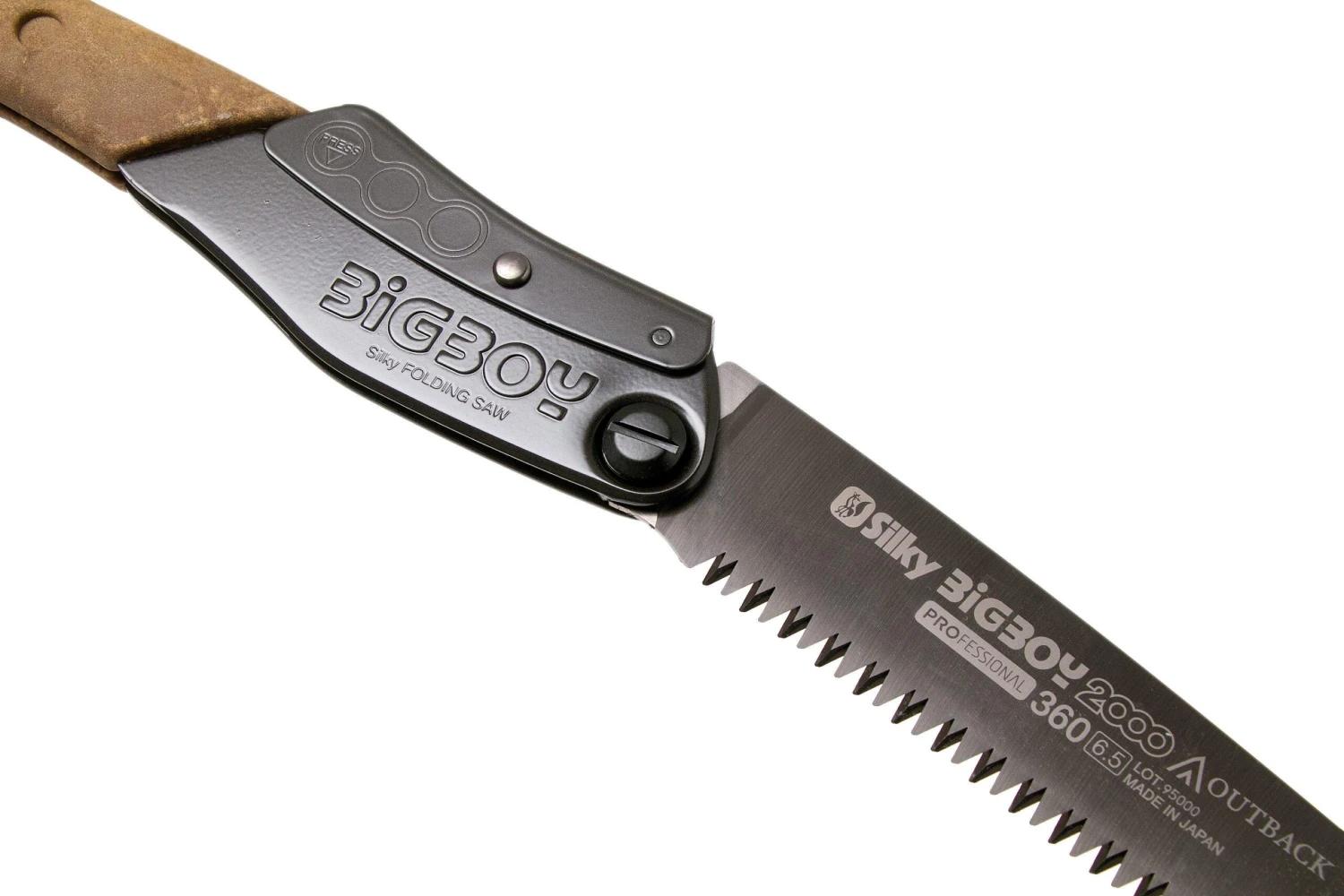 La Silky Bigboy 2000 Outback Edition est une version de la Silky Bigboy spécialement conçue pour la chasse et le bushcraft. La lame de scie courbe mesure 36 cm de long. Elle offre donc une bonne portée et permet de scier sans problème des branches jusqu’à 18 cm d’épaisseur. La lame courbe aide à maintenir la scie dans l’entaille de coupe. Pour plus de force, vous pouvez la tenir à deux mains.