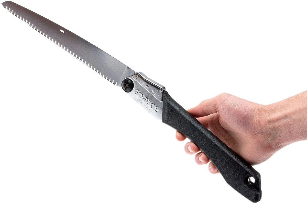 La Silky Gomboy est une scie pliante idéale pour une utilisation outdoor. En plus d’un couteau et d’une scie, une scie pliante légère et compacte devrait faire partie de votre équipement. Plus besoin de passer du temps à chercher le morceau de bois idéal, il vous suffit de le couper. Le manche est en matériau caoutchouteux confortable avec une bonne adhérence. La lame est en acier très dur et résistant à la corrosion. La boîte de transport en plastique incluse est très pratique.