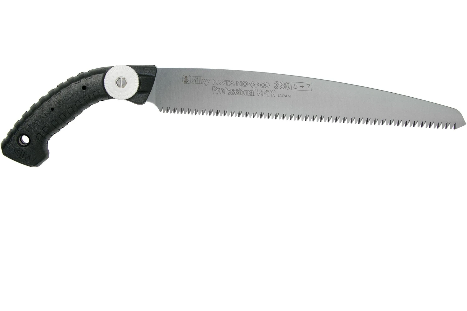 La Silky Natanoko 60 330-8 est une scie très stable dont la denture grossière est idéale pour scier le bois vert. La scie arbore un dos haut pour bien absorber les vibrations. Rigide et avec 8 dents par 30 mm, on peut couper des bûches épaisses sans effort et rapidement.