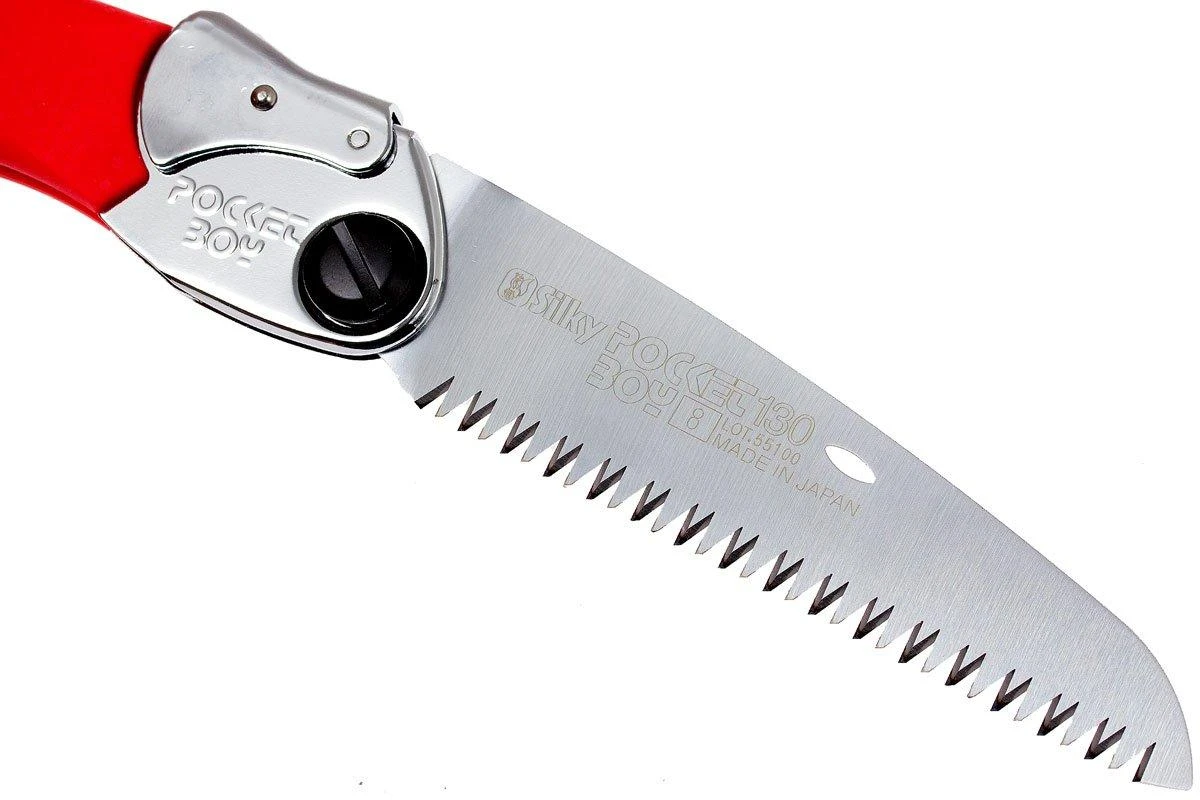 Silky Pocketboy est une scie pliante idéale pour une utilisation outdoor. En plus d’un couteau et d’une scie, une scie pliante légère et compacte devrait faire partie de votre équipement. Plus besoin de passer du temps à chercher le morceau de bois idéal, il vous suffit de le couper. Le manche est en matériau caoutchouteux confortable avec une bonne adhérence. La lame est en acier très dur et résistant à la corrosion. La boîte de transport en plastique incluse est très pratique. Cette scie a une denture moyenne adaptée à la coupe de bois vert/humide.