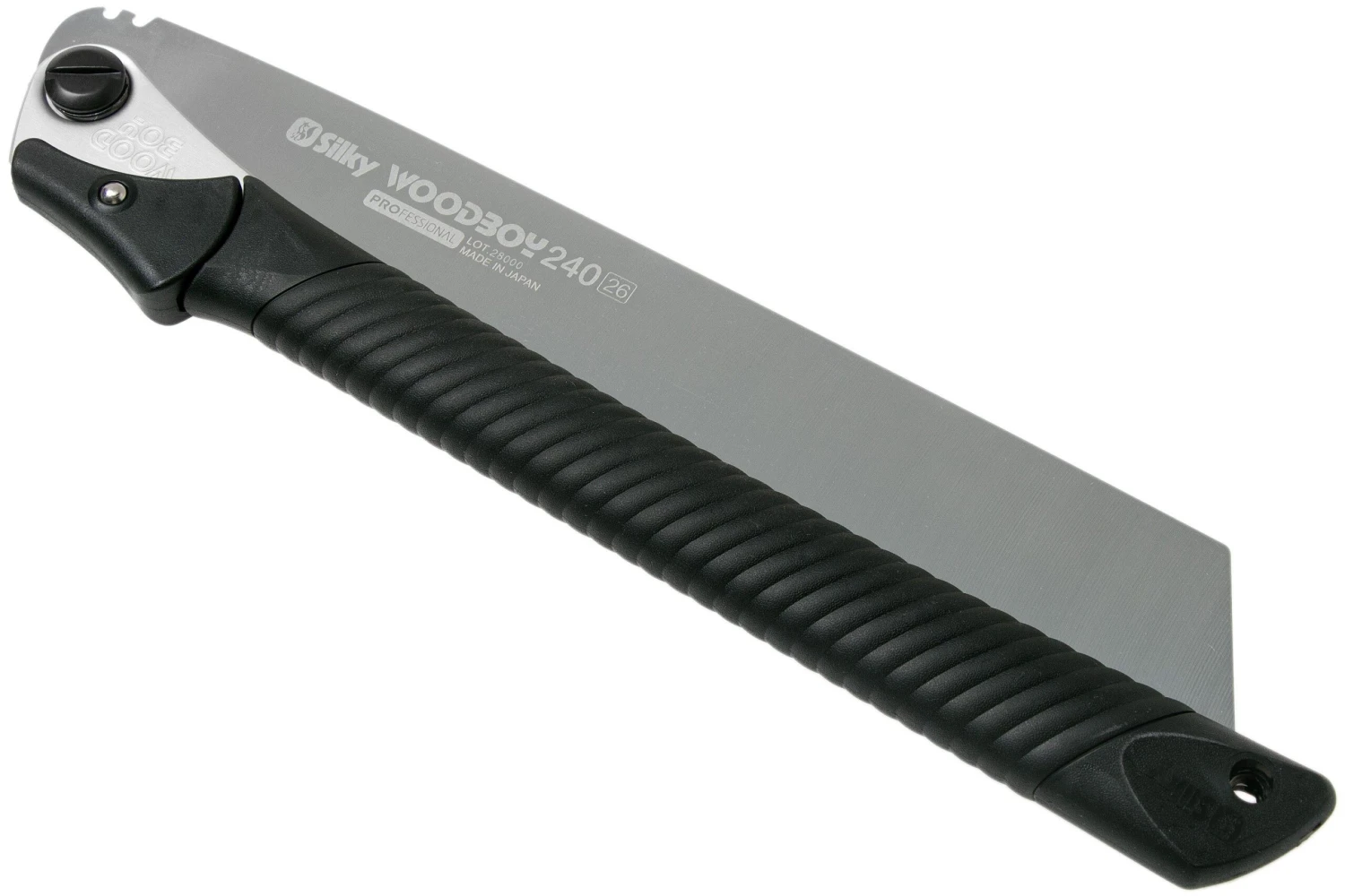 La scie à bois Silky Woodboy 240-26 est un hit chez les menuisiers. C’est une scie parfaite pour élaguer le bois. Les petites dentelures garantissent un passage tout en finesse à travers le bois dur et sec. La lame fine et souple en forme de trapèze est dotée de dentelures Silky spéciales. Ainsi, la scie laisse un angle de coupe net et droit. La lame est dotée d’un émouture creuse afin que la sciure ne s’accumule pas.