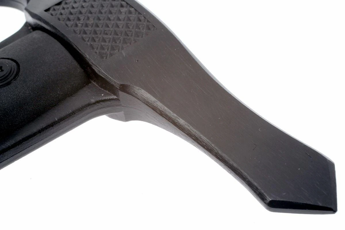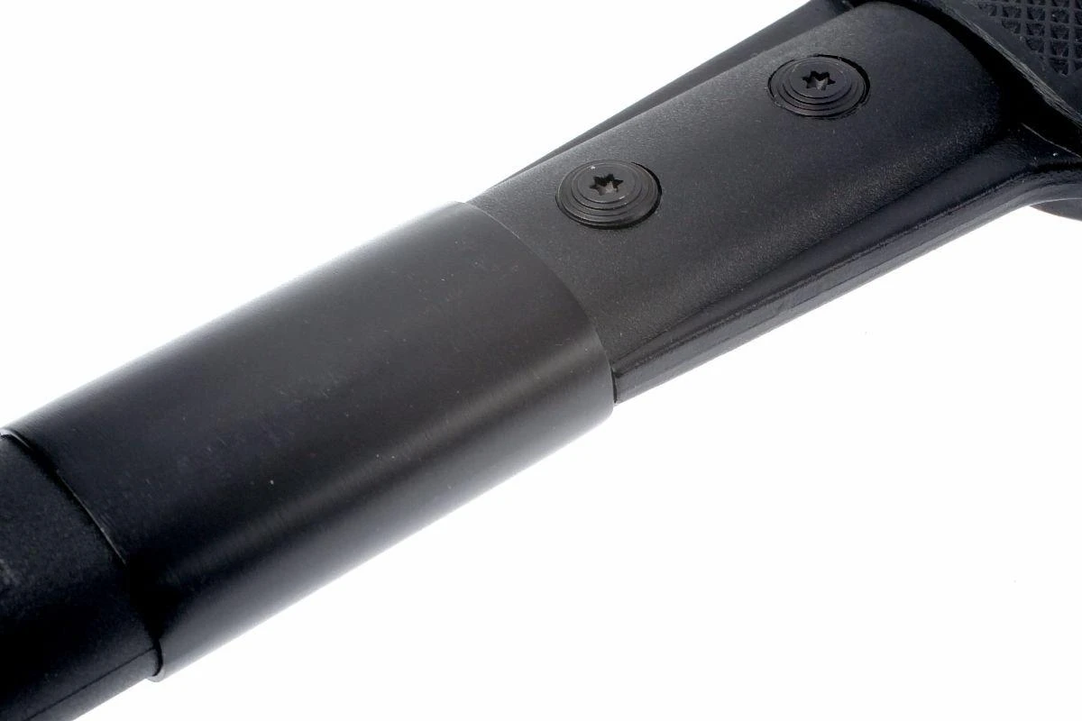 Ce tomahawk est un outil large qui peut être utilisé pour hacher, broyer, écraser, lancer. Et pour d’autres travaux où vous n’osez pas utiliser votre couteau de poche. La fixation de la tête avec les vis pleines et le collier métallique montre que ce tomahawk est vraiment destiné à être utilisé. L’étui en nylon peut être attaché à une ceinture ou par exemple un sac à dos.