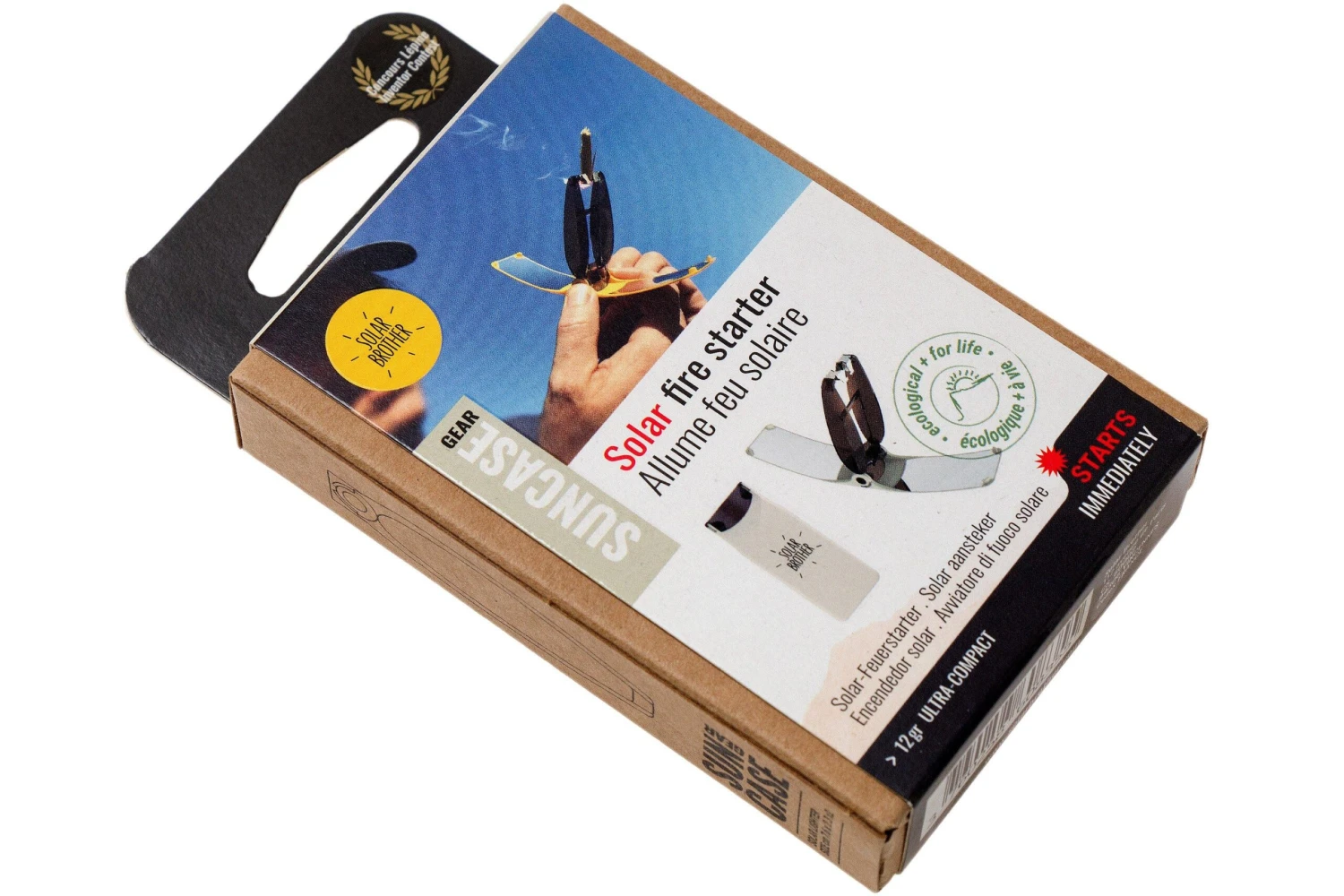 Le Solar Brother Suncase V2 est un allume-feu solaire compact pour toutes sortes d’activités outdoor : survie, camping, rando, escalade, etc. Il est super en déplacement. Il est tout petit (7 cm) et ultraléger (12 g). Avec le Suncase, vous pouvez toujours allumer un feu même par temps venteux. Tout ce qu’il vous faut c’est le soleil !
