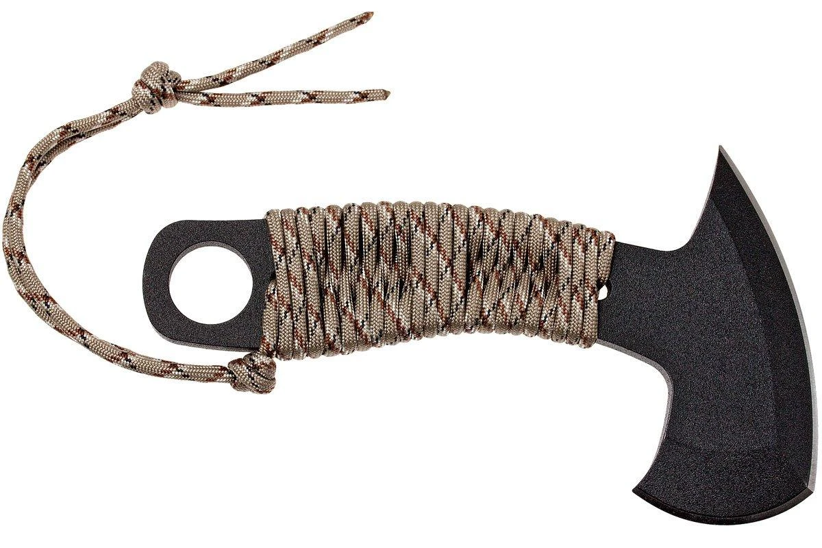 La TOPS Micro Hawk est une hachette plutôt intéressante. Elle convient pour couper du bois et débiter des petites buches sur un campement. Elle peut également servir pour du lancer. Tout l’avant ainsi que le dessus de la tête de hache sont aiguisés. En résulte un tranchant d’une longueur totale de 14 cm, et on trouve également une pointe acérée au dos. La TOPS Micro Hawk peut donc être utilisée pour tout un tas d’activités.