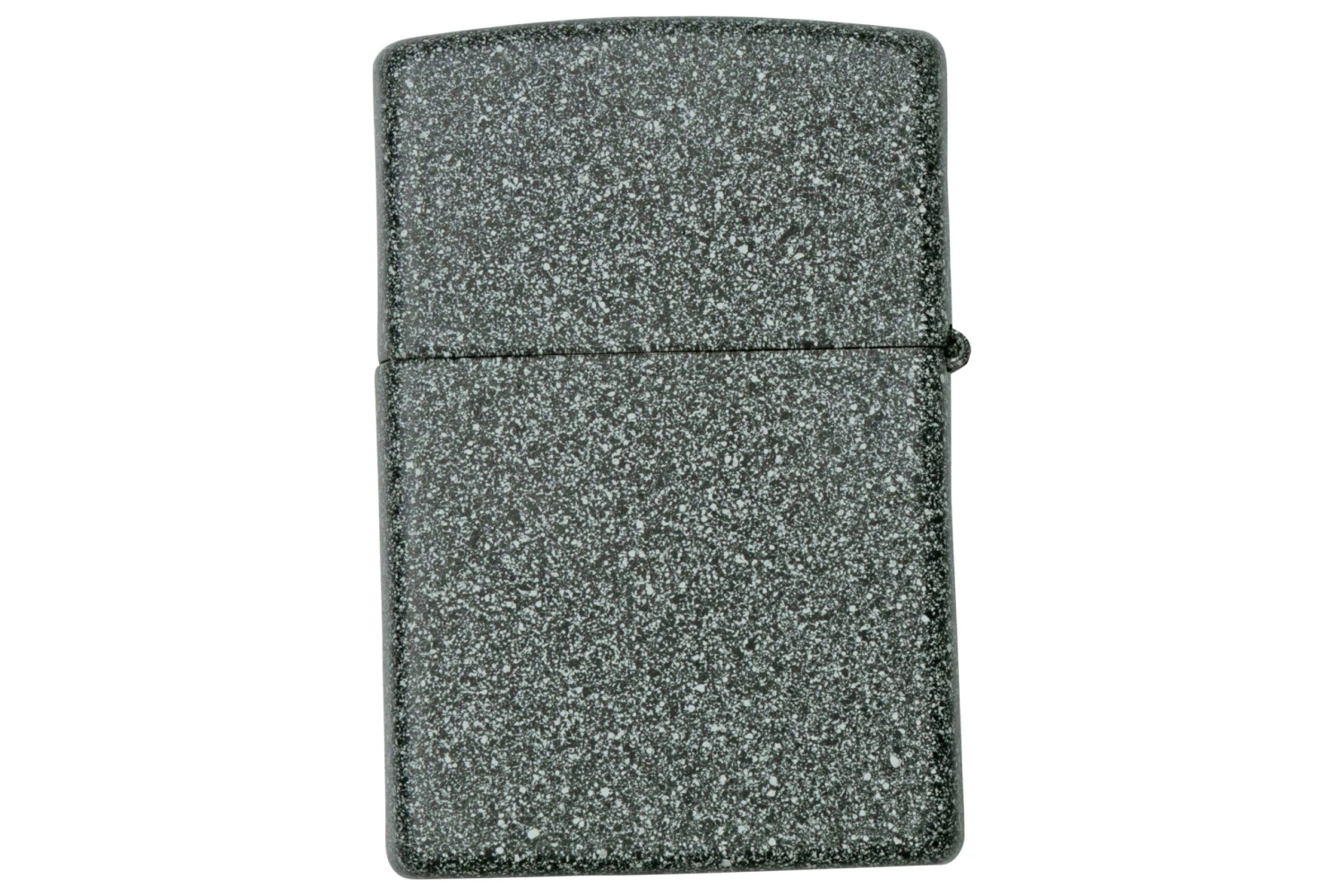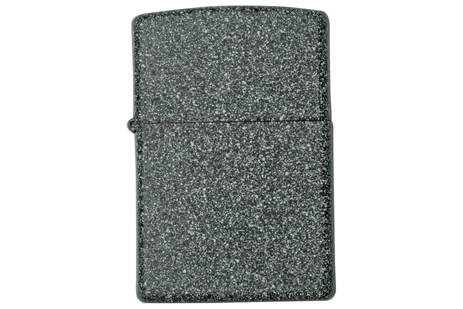 Ce briquet Zippo Iron Stone est noir et blanc, et ressemble à une pierre. Il est tout lisse.